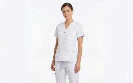 Uniforme Blanco Cuello V Vivo Lila Antifluido Importado Licrado