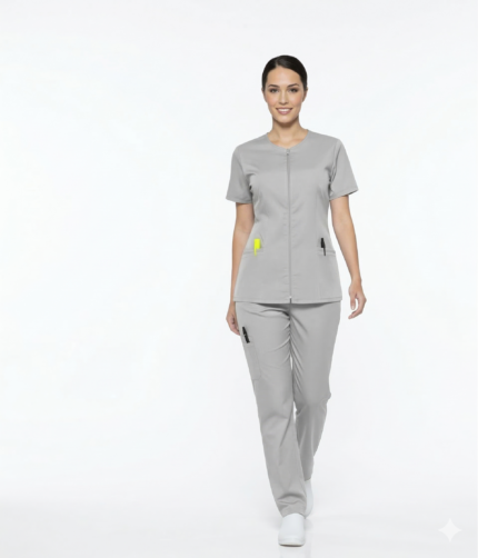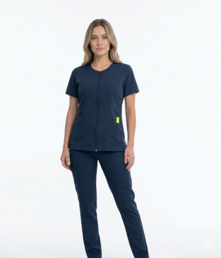 Uniforme Antifluido Verde Oscuro con Cierre Frontal y Apliques Animados