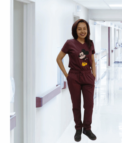 Uniforme Médico Vinotinto Antifluido en Lotus Lycra Lafayette – Mujer