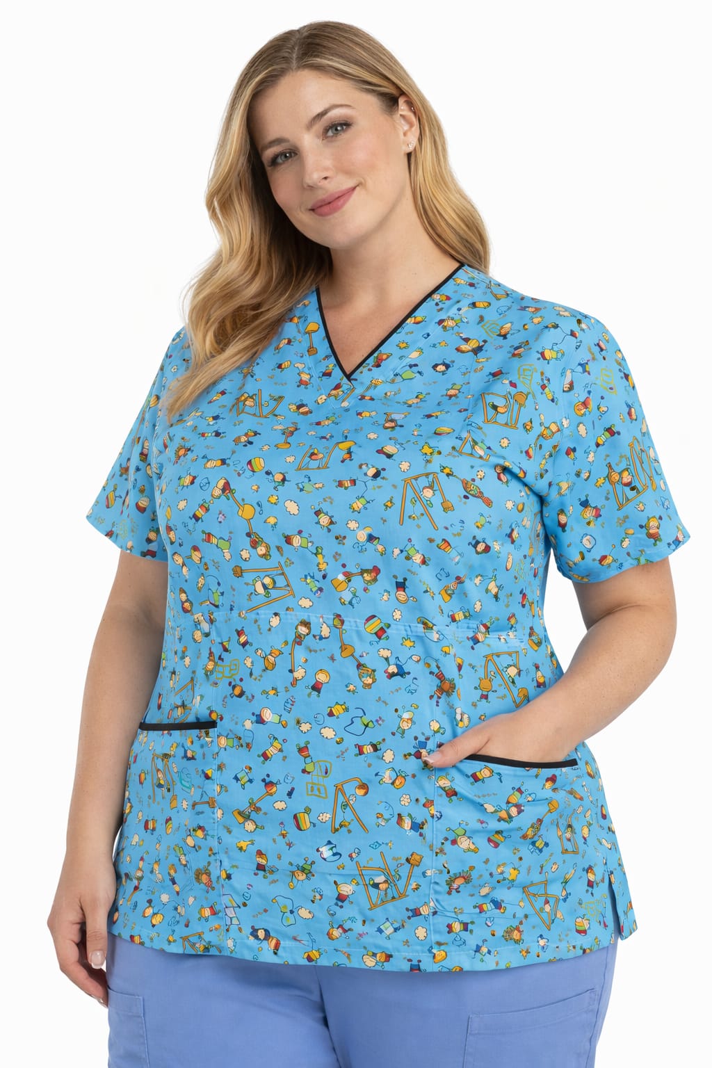 Blusa Blanco Cuello V Antifluido Estampado Laboratorio.