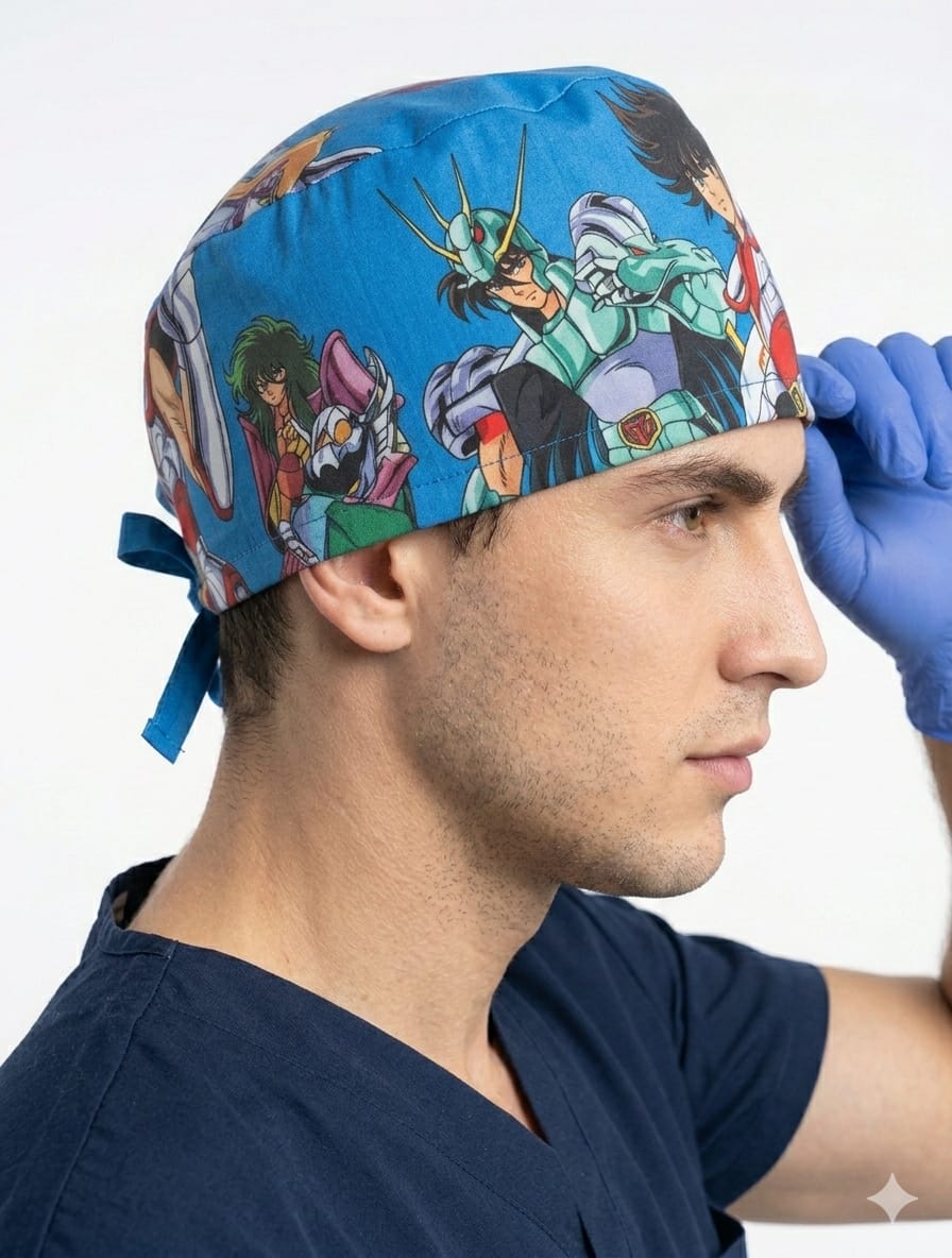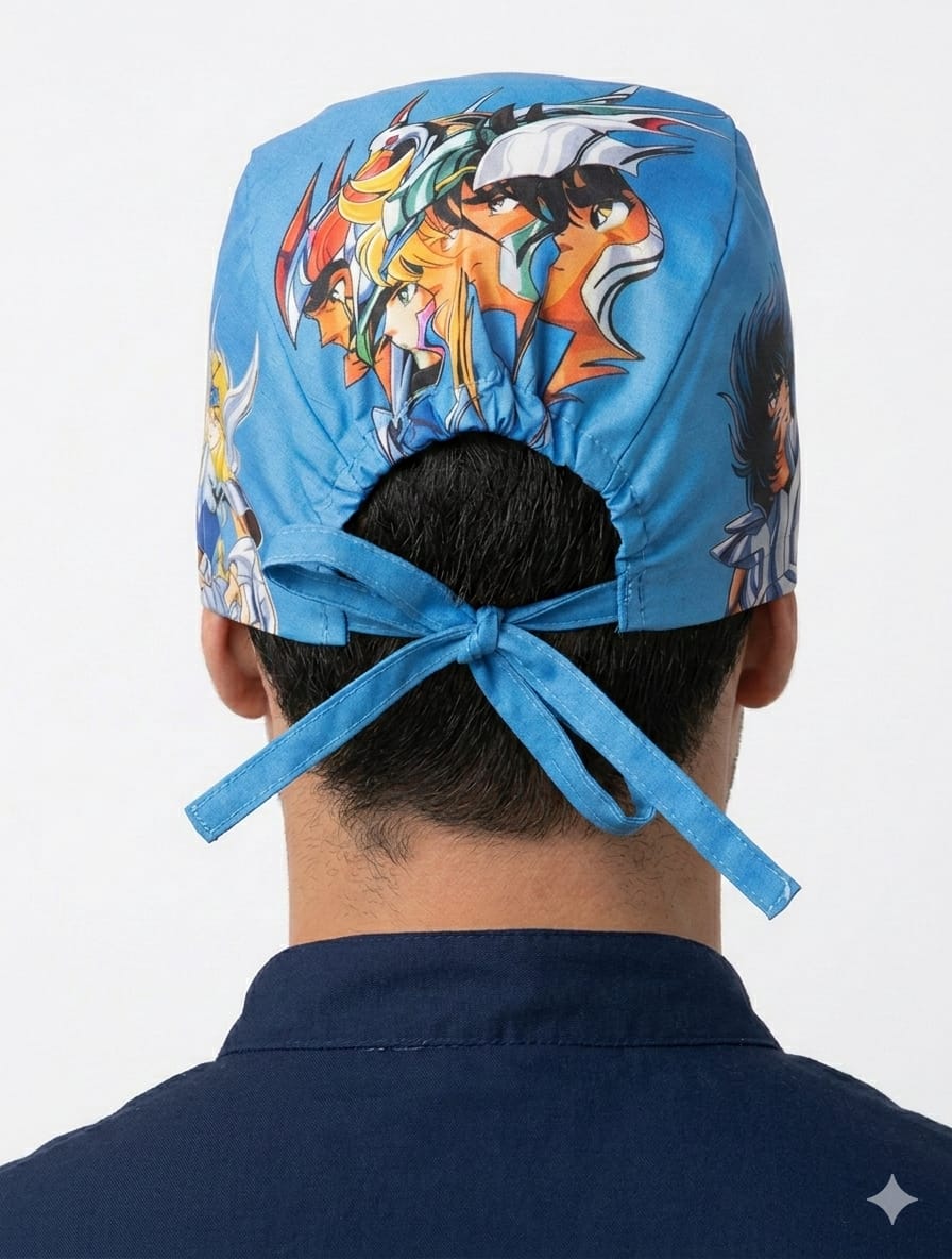 Este exclusivo gorro quirúrgico antifluido combina funcionalidad y estilo épico, presentando un diseño vibrante inspirado en los icónicos caballeros del anime. Fabricado con materiales de alta calidad que ofrecen una barrera protectora eficaz, cuenta con un ajuste ergonómico mediante tiras posteriores que aseguran comodidad durante toda la jornada laboral. Su estampado de alta definición en tonos azules y rojos no solo añade un toque de personalidad a tu uniforme médico, sino que también garantiza durabilidad frente a lavados constantes, siendo la elección ideal para profesionales de la salud que buscan destacar con un accesorio moderno, higiénico y lleno de nostalgia.