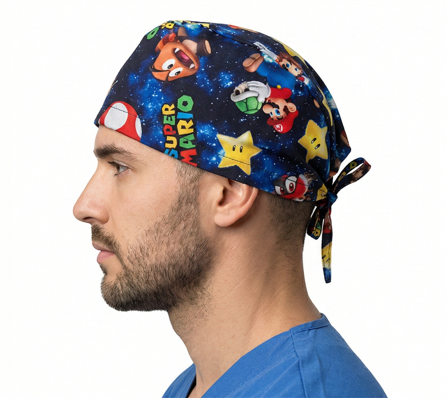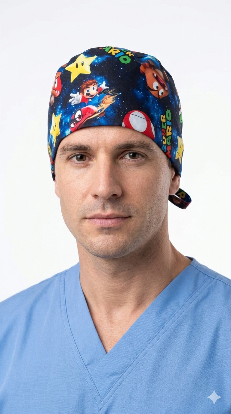 ¡Dale un «Power-Up» a tu uniforme y prepárate para rescatar el día! Este gorro quirúrgico combina la nostalgia del Reino Champiñón con la máxima protección y funcionalidad que necesitas en tu entorno profesional.Un tono azul profundo con detalles de galaxia que hace resaltar cada elemento del estampado.