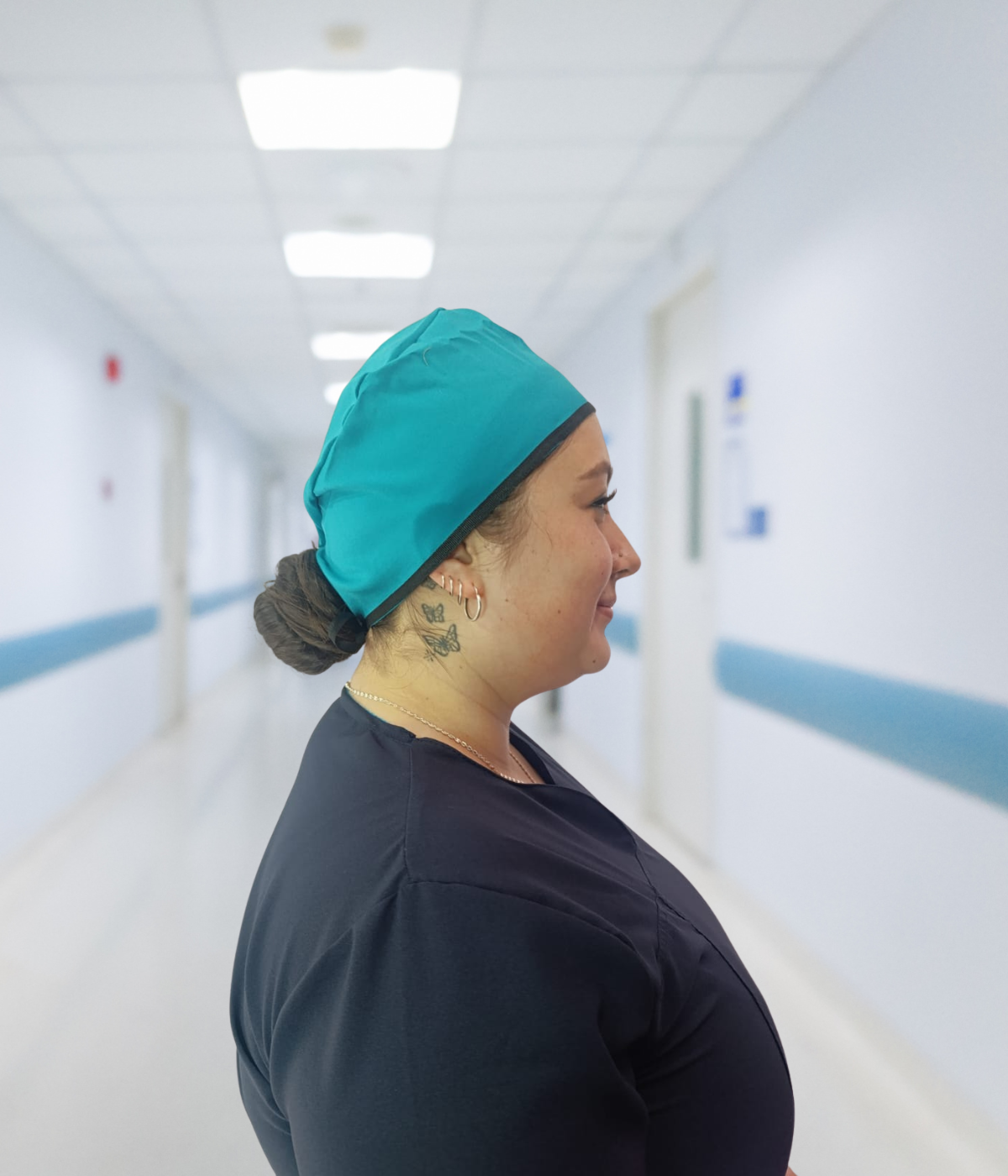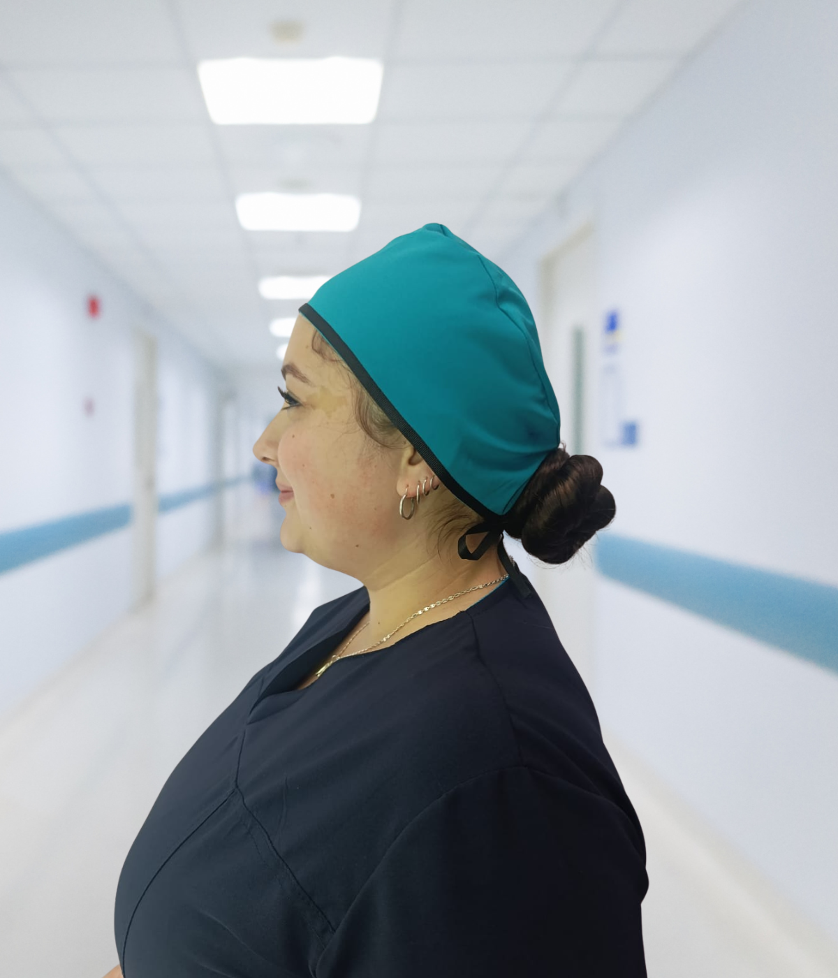 Su diseño liviano con banda ajustable permite un ajuste cómodo y seguro para todo tipo de cabello, garantizando estabilidad incluso durante turnos prolongados. El tono verde jade aporta una apariencia fresca, elegante y llamativa, perfecta para complementar cualquier uniforme sin perder profesionalismo.