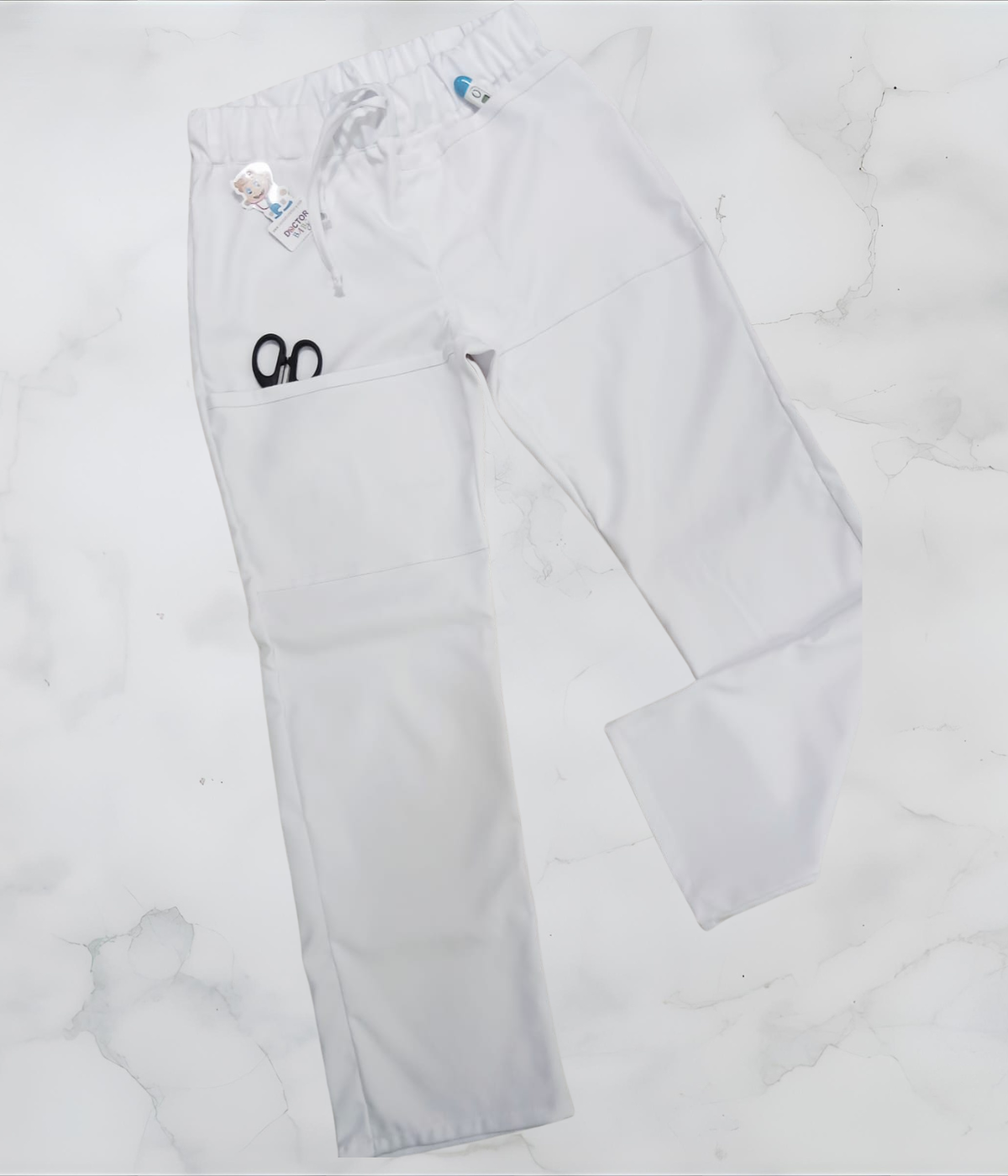 Pantalón con pretina de caucho, cordón blanco, bolsillos amplios pierna completa delantera sin cierre.