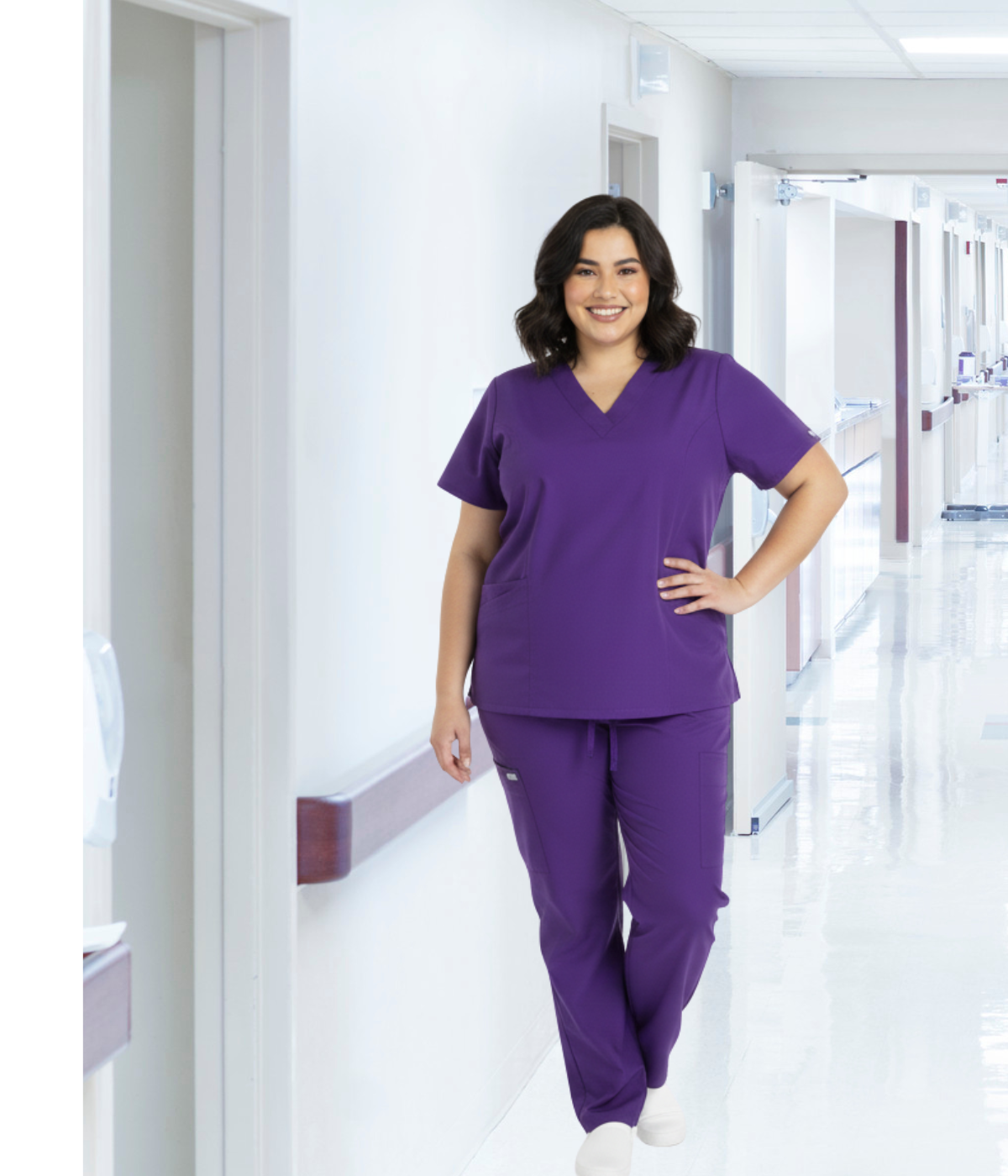 Este uniforme antifluido en color morado es la combinación ideal de funcionalidad y estilo. Confeccionado en tela antifluido de alta calidad, te protege de salpicaduras y líquidos, al mismo tiempo que permite libertad de movimiento y frescura durante el día. Su diseño incluye blusa con cuello en “V” y prácticos bolsillos, junto con pantalón de pretina elástica y cordón ajustable para mayor comodidad. Perfecto para profesionales de la salud, estética y áreas que requieren un uniforme resistente, elegante y moderno.