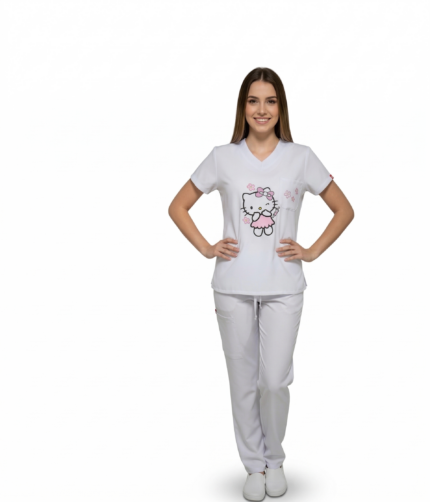 Uniforme Antifluido Hello Kitty Blanco – Dulzura y Comodidad Profesional