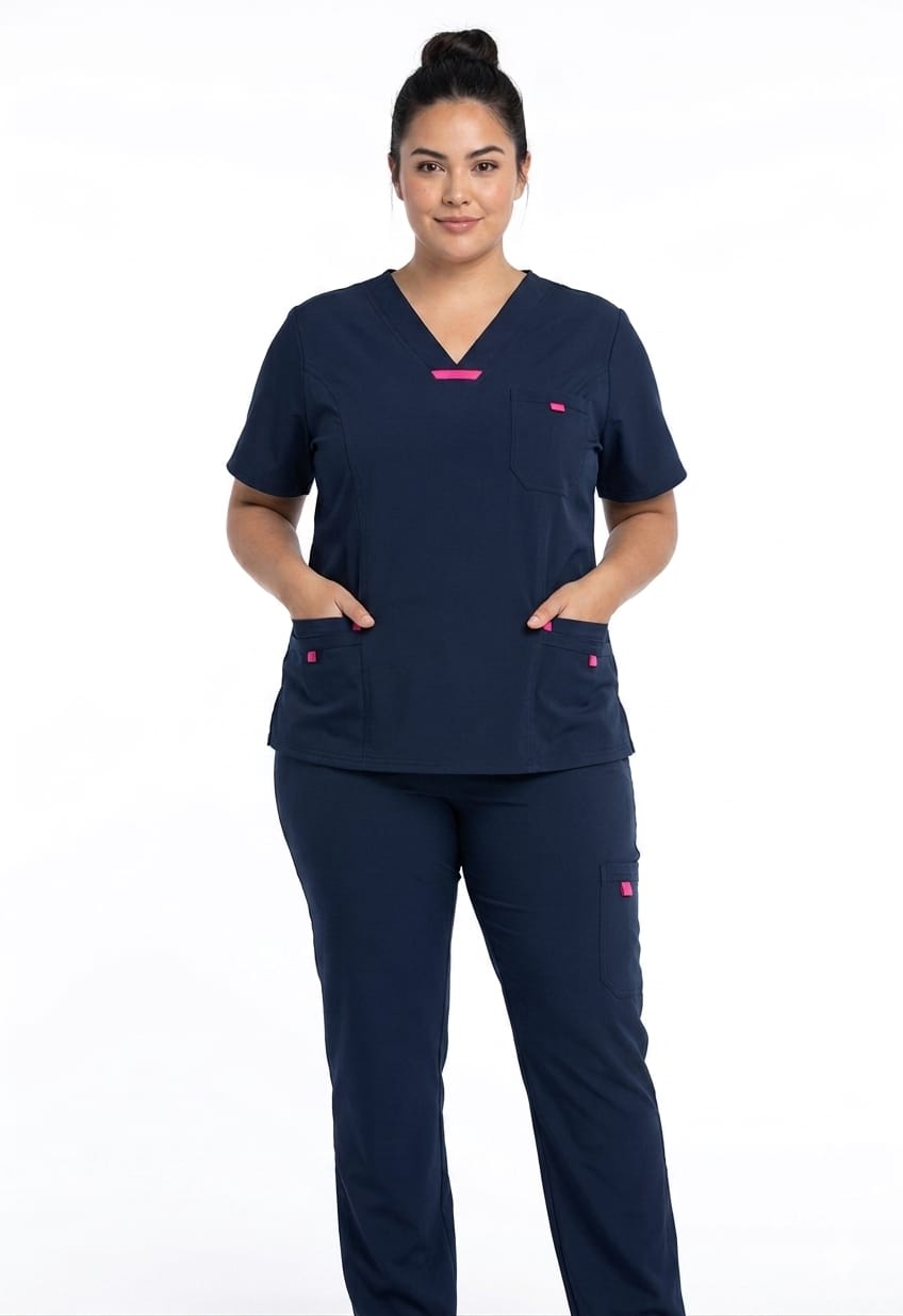 Uniforme Azul Noche Cuello V Vivo Fucsia Universal Lycra Lafayette