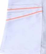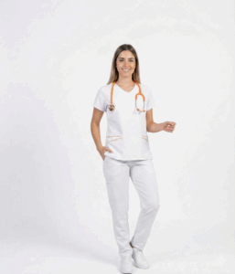 Este conjunto de dos piezas en color blanco destaca por su equilibrio entre pureza y energía. Confeccionado con la tecnología textil Cosmos de Lafayette, ofrece una barrera antifluido de alta calidad y excelente durabilidad. La blusa de cuello en V clásico se renueva con unos vibrantes vivos en color naranja en los bolsillos delanteros, un detalle que aporta dinamismo y vitalidad a tu imagen profesional sin perder la elegancia. El pantalón a juego completa el uniforme, garantizando comodidad y resistencia para enfrentar las jornadas más exigentes con el mejor estilo.