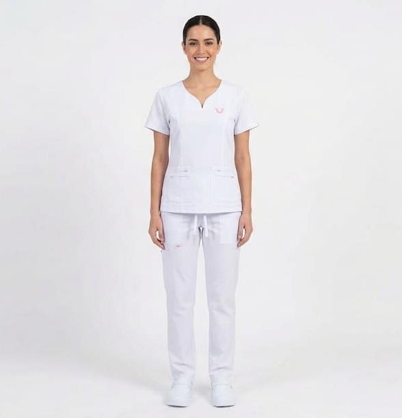Este uniforme médico en color blanco impecable proyecta una imagen de máxima pulcritud, profesionalismo y serenidad, ideal para entornos clínicos que exigen altos estándares de higiene. Su diseño cuenta con una filipina de cuello estilizado con un sutil detalle en «V» y cortes entallados que brindan una apariencia moderna y sofisticada, complementada por un pantalón de corte recto que asegura una silueta limpia y profesional. Confeccionado con textiles de alta calidad que combinan frescura y resistencia, este conjunto no solo garantiza comodidad durante turnos prolongados, sino que también ofrece la funcionalidad necesaria gracias a sus bolsillos estratégicos, convirtiéndose en una pieza esencial y atemporal para el personal de salud.