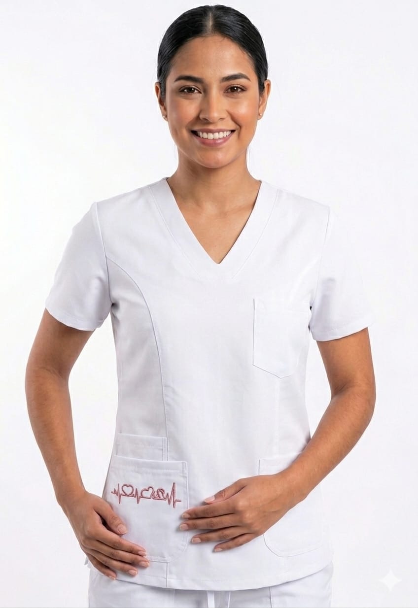 Uniforme Blanco Cuello V Corto Bolsillo Bordado Snnopy Cosmos Lafayette