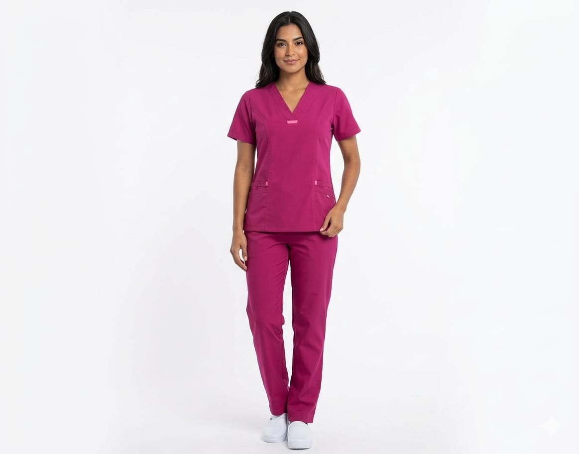 Uniforme Fucsia Cuello V Con Vivo Fucsia Antifluido Universal Lafayette