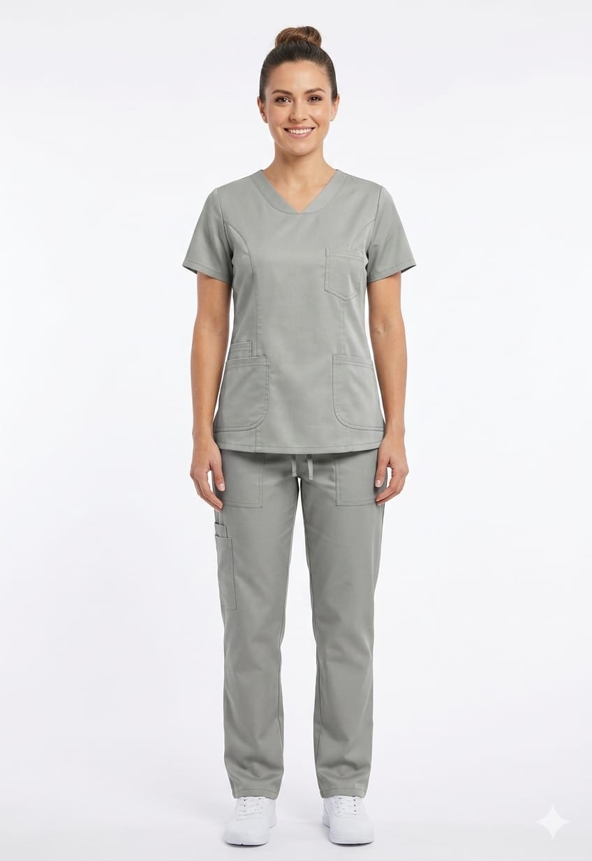 Uniforme Gris Perla Cuello V Corto Lotus Lycra Lafayette