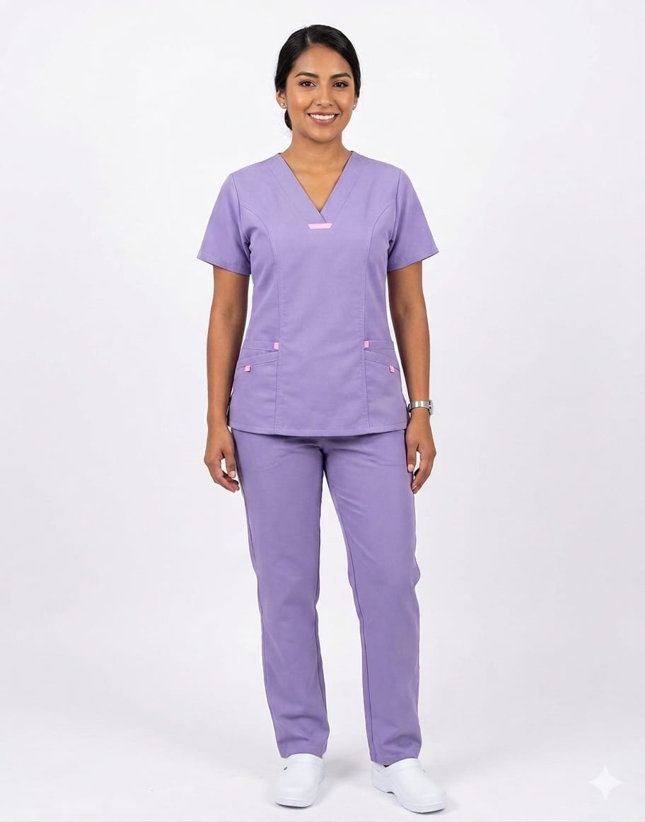 Este conjunto médico está confeccionado con la tecnología textil cloro resistente de Lafayette, garantizando una durabilidad superior y una apariencia impecable frente a lavados frecuentes y agentes químicos. Su diseño en un suave tono lavanda se realza con vivos en rosa pastel que aportan un toque moderno y femenino, mientras que su corte ergonómico asegura máxima libertad de movimiento durante las jornadas más exigentes. Es la combinación perfecta de funcionalidad profesional y estilo, ideal para quienes buscan una prenda que no solo proteja, sino que también mantenga su color y textura intactos por mucho más tiempo.
