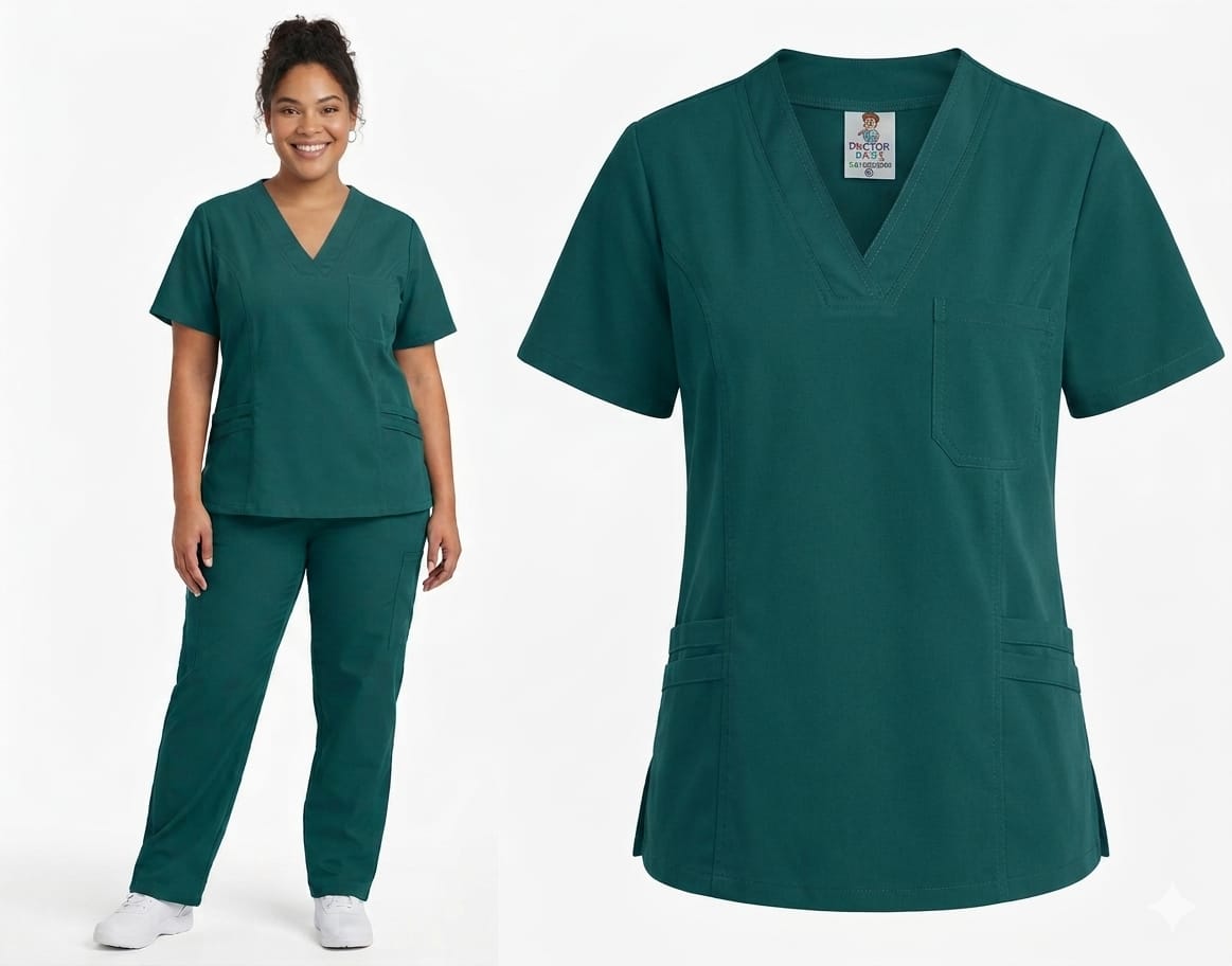 Uniforme Verde Petróleo Cuello V Antifluido Universal Cloro-resistente Lafayette