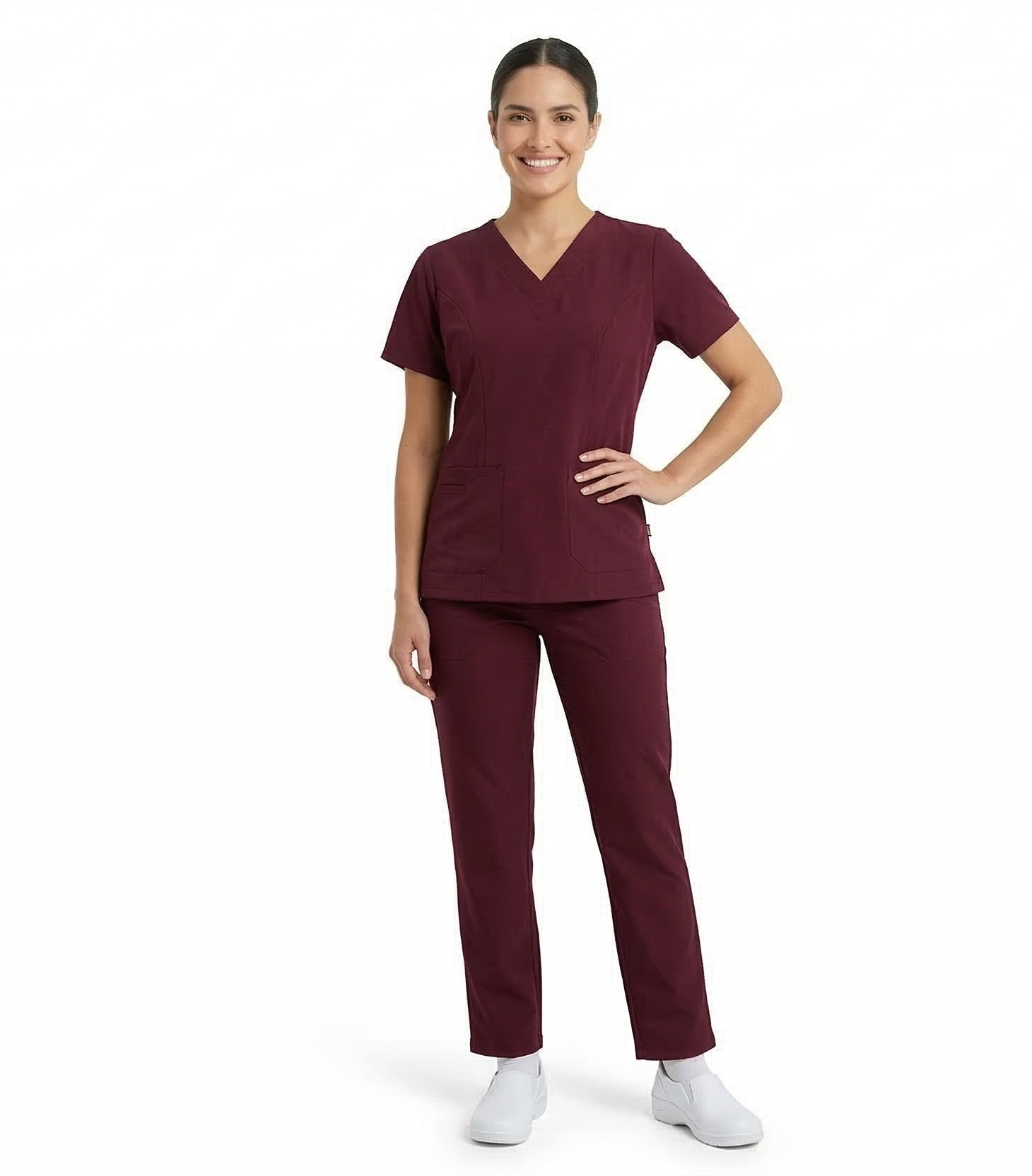 Uniforme Vinotinto Cuello V Antifluido Importado, diseñado para brindar comodidad, estilo y funcionalidad en cada jornada laboral. Su tela antifluido de alta calidad ayuda a repeler líquidos y mantener una apariencia profesional por más tiempo, mientras que el diseño de cuello en V aporta un look moderno y cómodo. Ideal para profesionales de la salud que buscan un uniforme elegante, práctico y resistente. 👩⚕️✨