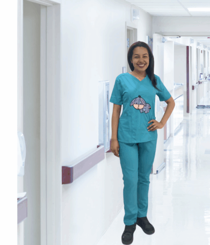 Uniforme Antifluido Agua Marina con Diseño Bordado Pantera Rosa – Estilo Profesional y Confort