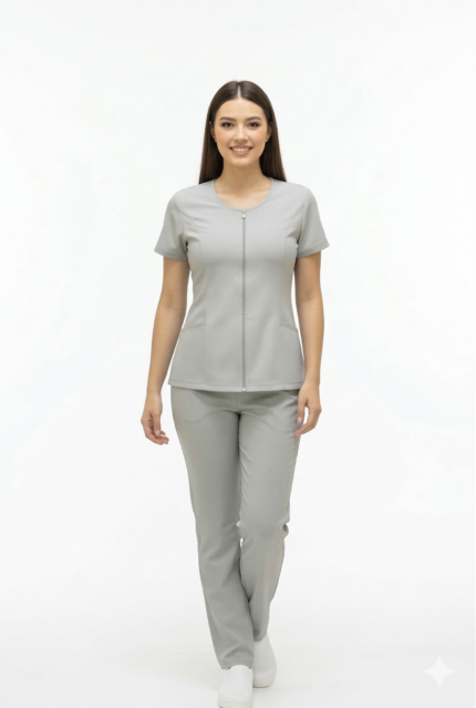 Blusa Antifluido Gris con Cremallera Frontal